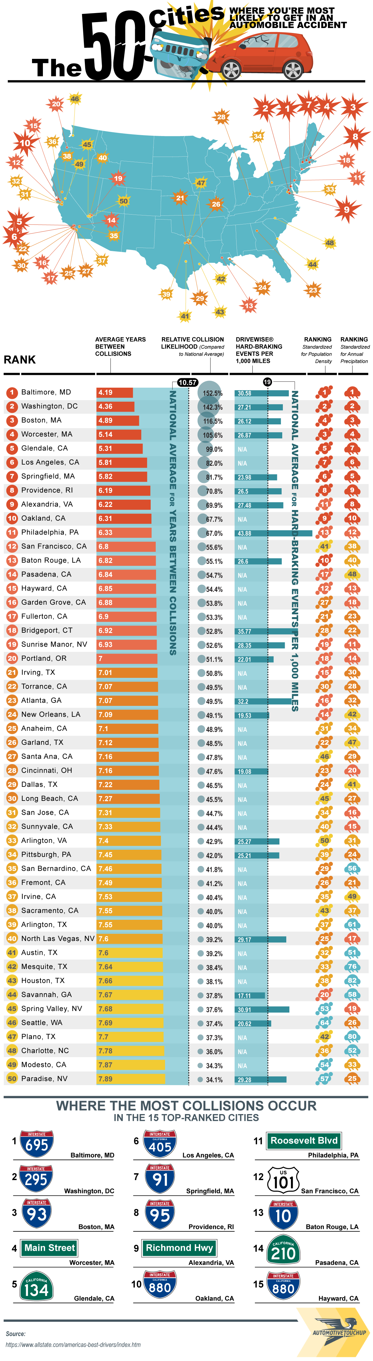 In Which City Are You Most Likely to Get in an Automobile Accident?